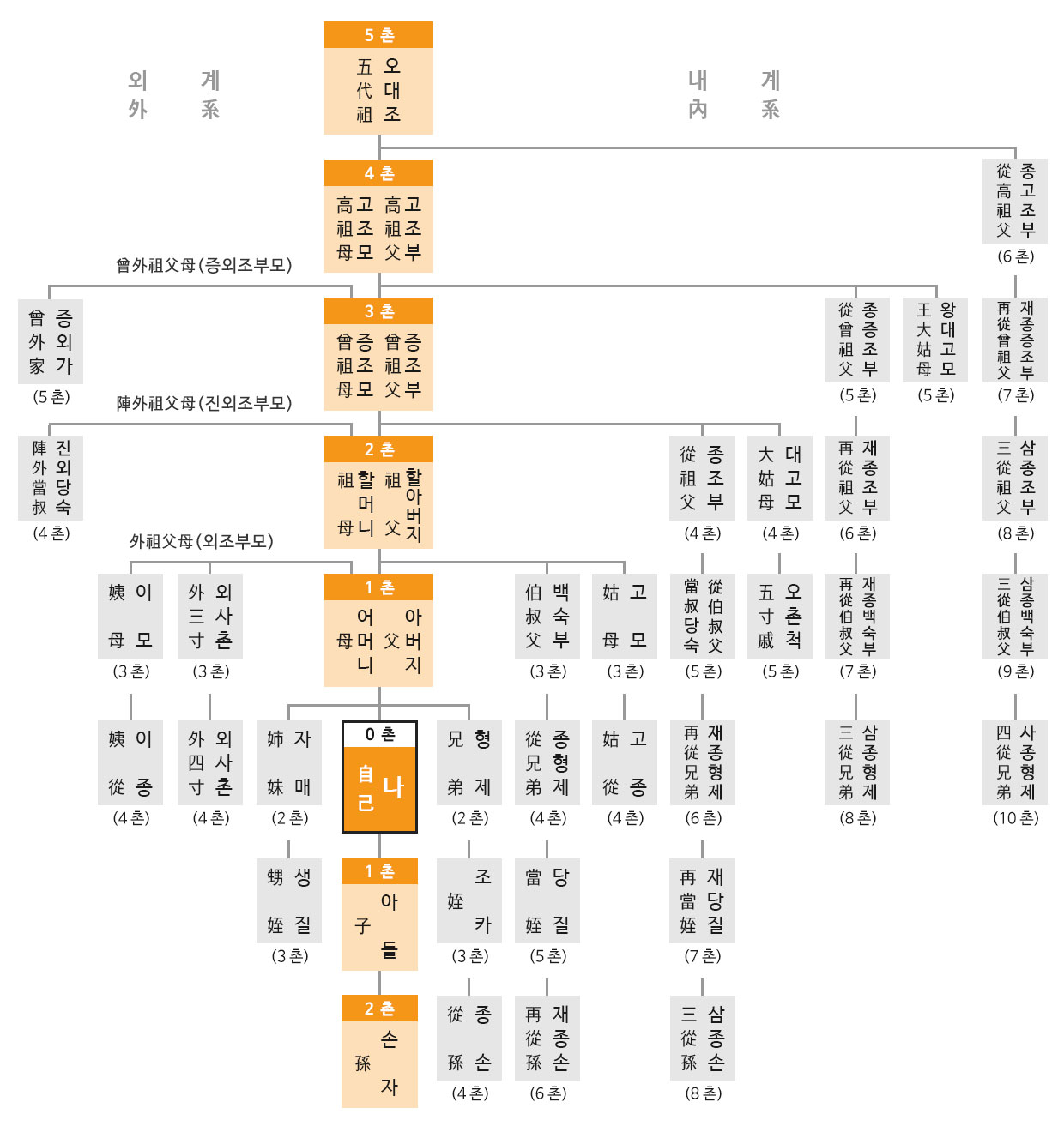 | 내종형제 | 내종사촌(內從四寸) | 고모의 아들 딸 |